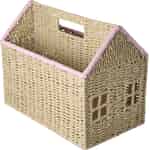 - Fröhliche rosa Akzente: Die zartrosa Borte entlang der Dachlinie und der Öffnung sorgt für einen süßen Farbtupfer, der wunderbar mit dem natürlich gewebten Korpus kontrastiert.